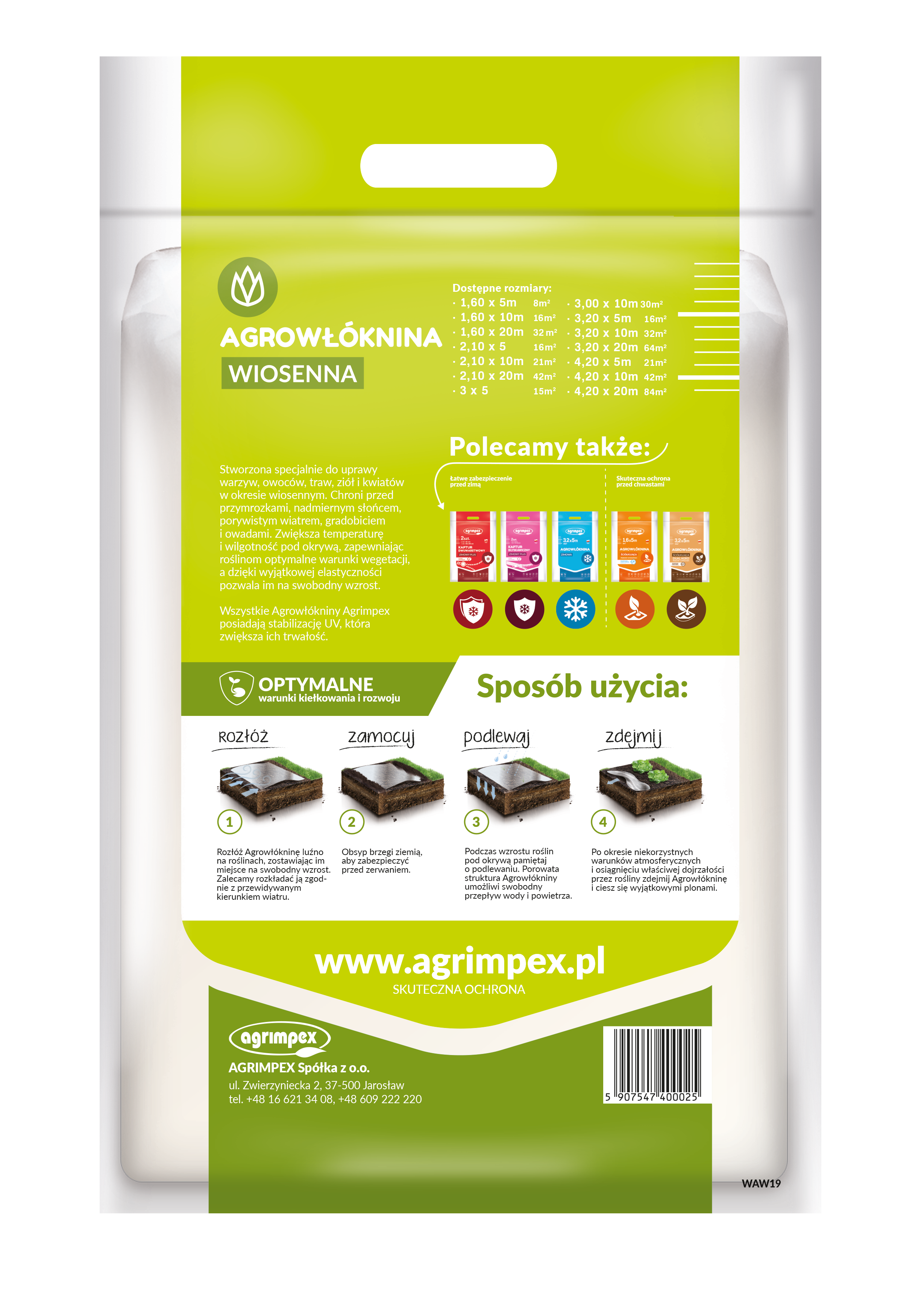 Wiosenna agrowłóknina osłaniająca Agrimpex Hobby to specjalistyczny produkt przeznaczony do ochrony roślin uprawianych wczesną wiosną. Jej zastosowanie zaleca się szczególnie przy uprawie warzyw, owoców, ziół, traw oraz kwiatów, które w początkowej fazie wzrostu są wyjątkowo wrażliwe na zmienne warunki atmosferyczne.