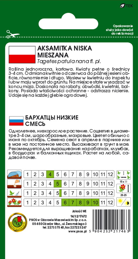 | Nazwa łacińska | Tagetes patula nana fl. pl. |