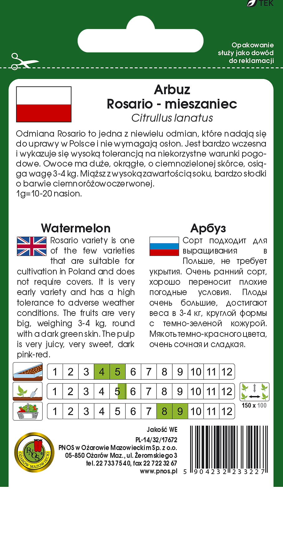 Norma wysiewu (produkcja rozsady) - 3-4kg/ha