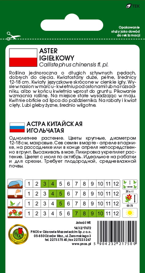 | Nazwa łacińska | Callistephus chinensis fl. pl. |