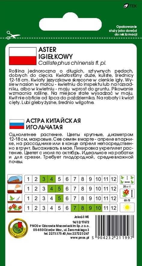 | Nazwa łacińska | Callistephus chinensis fl. pl. |