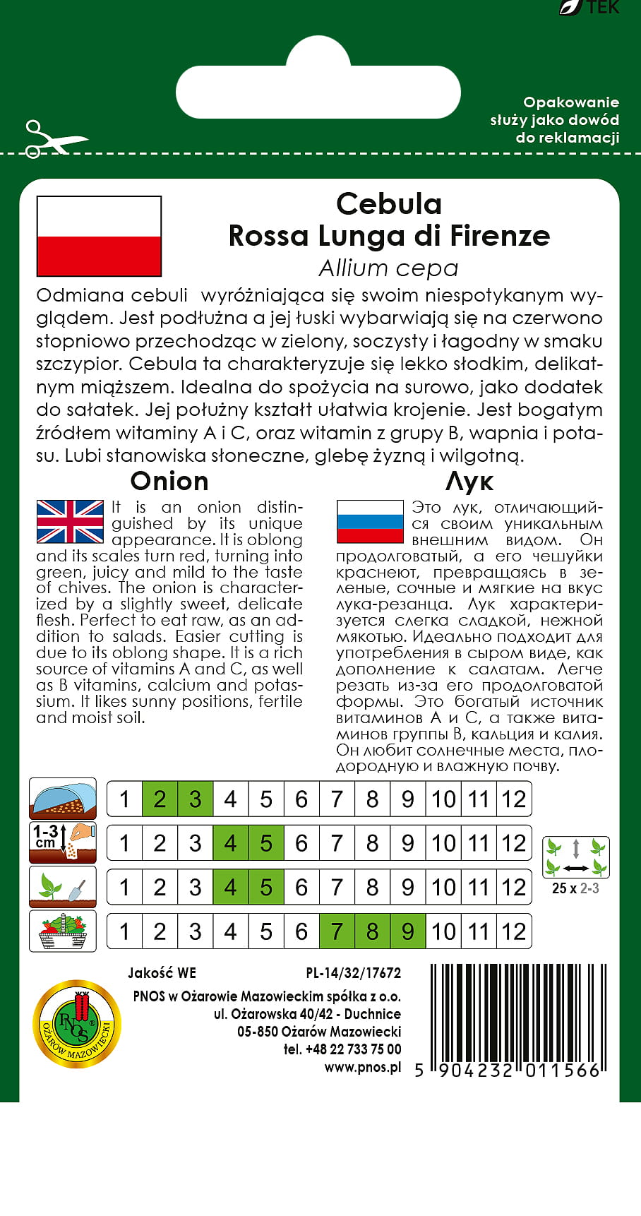 Cebula wyróżniająca się swoim niespotykanym wyglądem. Jest podłużna, a jej łuski wybarwiają się na czerwono przechodząc w zielony soczysty i łagodny w smaku szczypior. Cebula charakteryzuje się lekko słodkim, delikatnym miąższem. Idealna do spożycia na surowo, jako dodatek do sałatek. Łatwiejsze krojenie zawdzięcza swojemu podłużnemu kształtowi. Jest bogatym źródłem witaminy A i C oraz witam z grupy B, wapnia i potasu. Lubi stanowiska słoneczne, glebę żyzną i wilgotną.