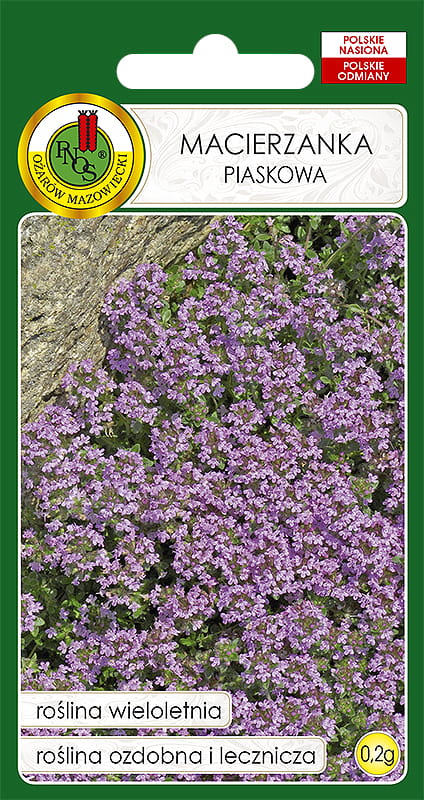 Macierzanka piaskowa jest niską, płożącą się zimozieloną krzewinką, która osiąga wysokość 5cm. W maju gdy zakwita jej fioletowe kwiatostany wyrastają ponad ogólna bryłę liści dodając jej do 10cm wysokości. Ze zdrewniałych łodyg wyrastają liście i łodygi kwiatostanowe. Liście choć drobne, są bardzo liczne tworząc zwarty zielony dywan. Uprawę warto rozpocząć od wysiewu - nasiona macierzanki piaskowej świetnie sprawdzą się na rabatach, murkach czy w ogrodach skalnych, tworząc efektowne, pachnące kobierce. Macierzanka nie ma specjalnych wymagań co do gleby, choć paradoksalnie lepiej udaje się na tych uboższych, z domieszką piasku.
