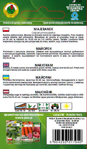 | Nazwa łacińska | Origanum majorana |