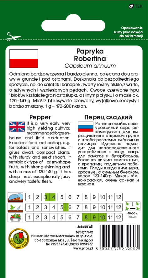 Papryka 'ROBETINA' odmiana bardzo wczesna