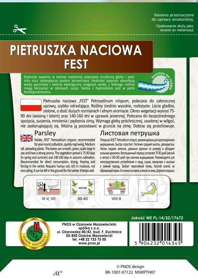 Opakowanie: ok. 150 nasion w 6m taśmy