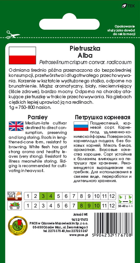 Pietruszka 'ALBA' odmiana średnio późna