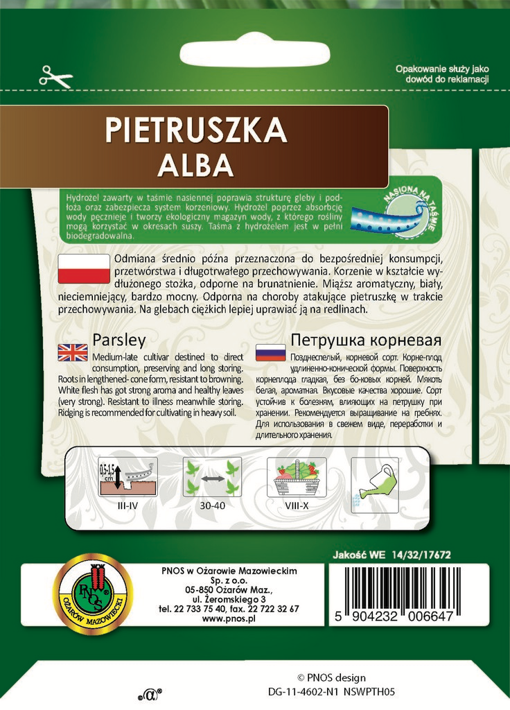 Pietruszka 'ALBA' odmiana średnio późna