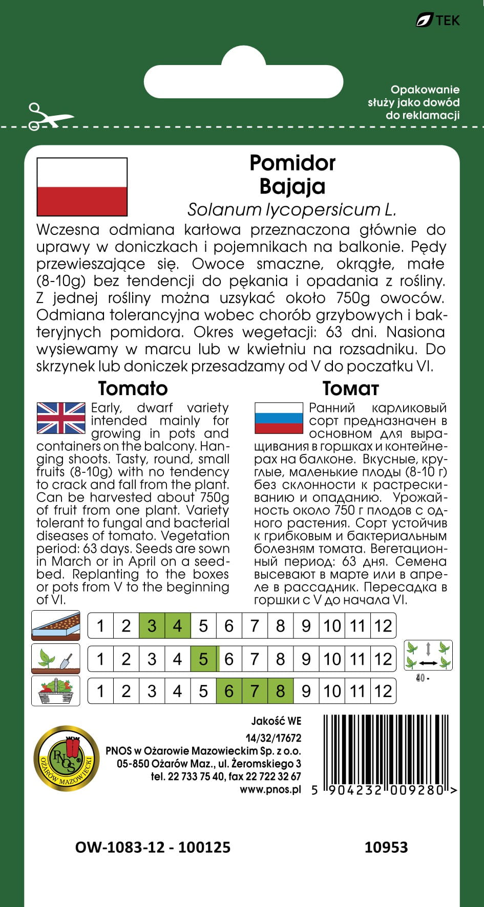 Termin wysiewu: 2 dekada III-1 dekada IV (rozsada)
