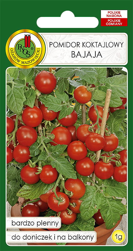 Pomidor Bajaja to wczesna odmiana pomidora gruntowego. Odmiana karłowa. Uprawa Pomidory Bajaja sprawdzają się w uprawie w doniczkach i pojemnikach na balkonie. Bajaja tworzy przewieszające się pędy, obsypane licznymi owocami. Owoce pomidorów są bardzo smaczne, okrągłe, małe (8-10g). Nie wykazują tendencji do pękania i opadania z rośliny. Z jednej rośliny uzyskuje się około 750g owoców. Odmiana pomidora jaką jest Bajaja jest tolerancyjna wobec chorób grzybowych i bakteryjnych. Liczba dni od posadzenia do zbioru: 63.