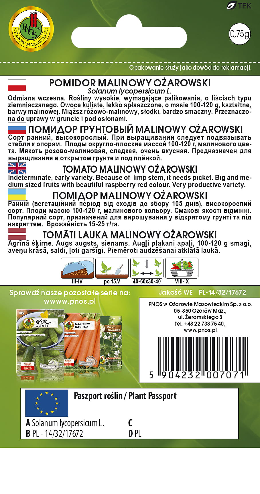 Pomidor gruntowy Malinowy Ożarowski 0,75g