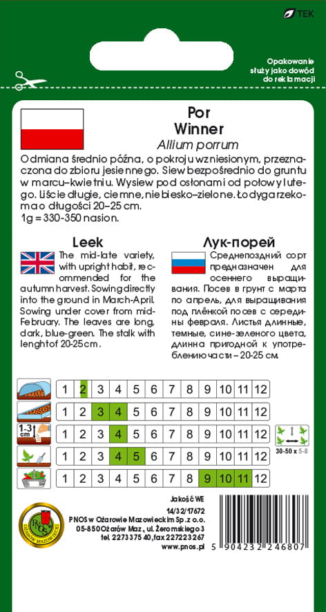 Norma wysiewu: 2,5-3kg/ha (do gruntu)