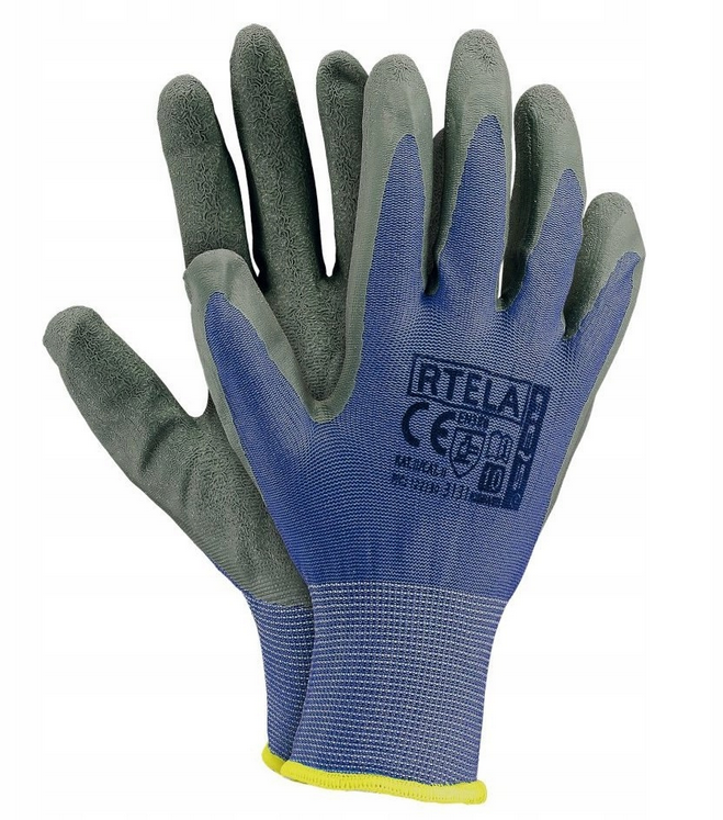 Rękawice robocze zostały zaprojektowane z myślą o komforcie i bezpieczeństwie w pracy. Wykonane z mocnego poliestru, mają lateksowe powleczenie, co sprawia, że są wytrzymałe i dobrze chronią przed uszkodzeniami. Dodatkowy ściągacz na nadgarstku zapewnia dobre dopasowanie, co zwiększa komfort noszenia.