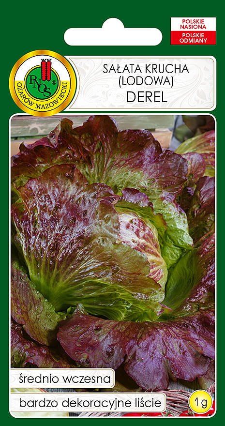 Odmiana sałaty lodowej, typu Iceberg, kruchej. Sałata Derej to odmiana średnio wczesna. Tworzy główki, które osiągają wielkość do 600g. Liście sałaty mają ozdobny wygląd, są bardzo smaczne. Są jasnozielone a ich brzegi przybierają kolor ciemnoczerwony. Odmiana sałaty lodowej Derel jest uprawiana na zbiór wiosenny, letni i jesienny, w polu i szklarniach. Sadzonki sałaty przesadza się na miejsce stały, gdy wykształci 5-6 liści właściwych.