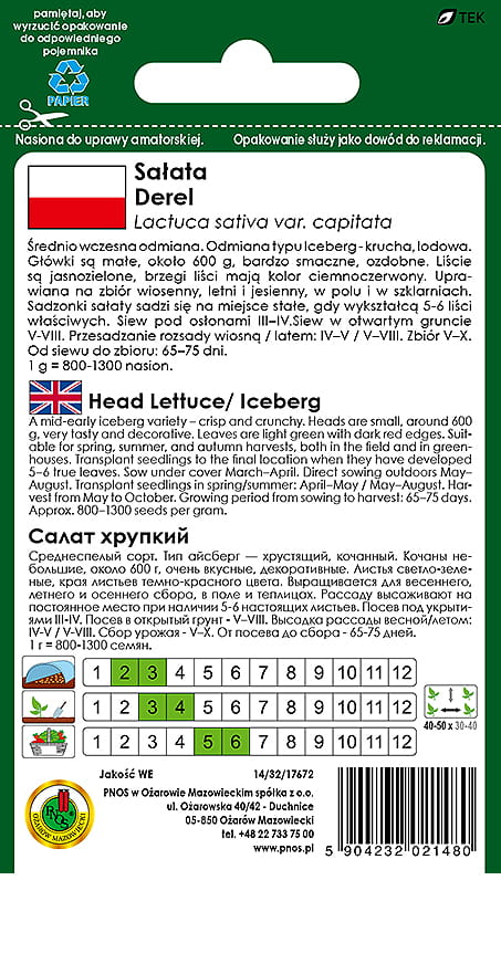 Norma wysiewu: 0,2-0,3 kg/ha (rozsada)