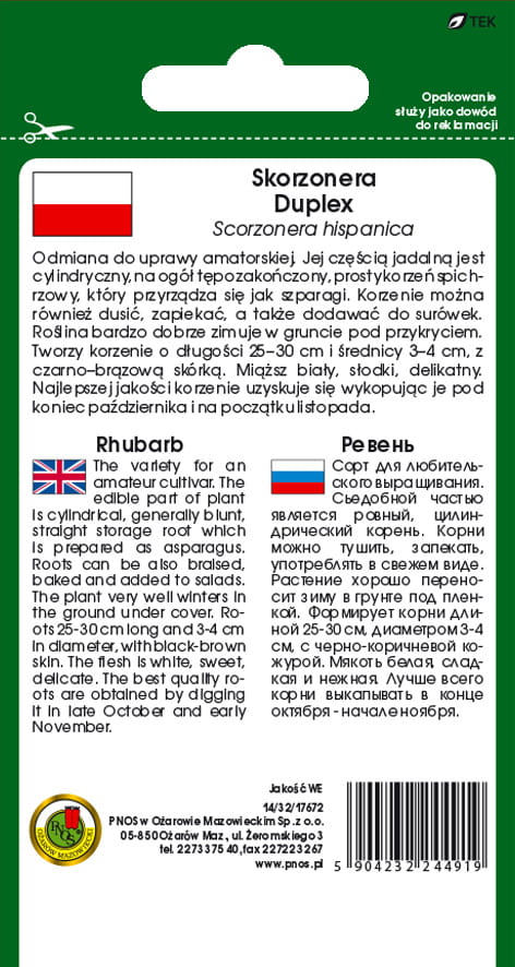 Warzywo do uprawy amatorskiej odznaczające się dużą wartością odżywczą i dietetyczną. Korzenie spichrzowe cylindryczne, długości 25-30 cm i średnicy 3-4 cm, proste z czarno-brązową skórką. Miąższ biały, słodki, delikatny. Przyrządza się jak szparagi lub kalafior, smaży w cieście, stosuje jako susz do zup. Zimuje w gruncie pod przykryciem. Nadaje się do przechowywania w piasku. Najlepszej jakości korzenie uzyskuje się wykopując je pod koniec października i na początku listopada. Nie należy dopuścić, aby podczas kopania korzenie zostały uszkodzone, gdyż wyciekający z nich sok mleczny powoduje ich gorszą jakość.