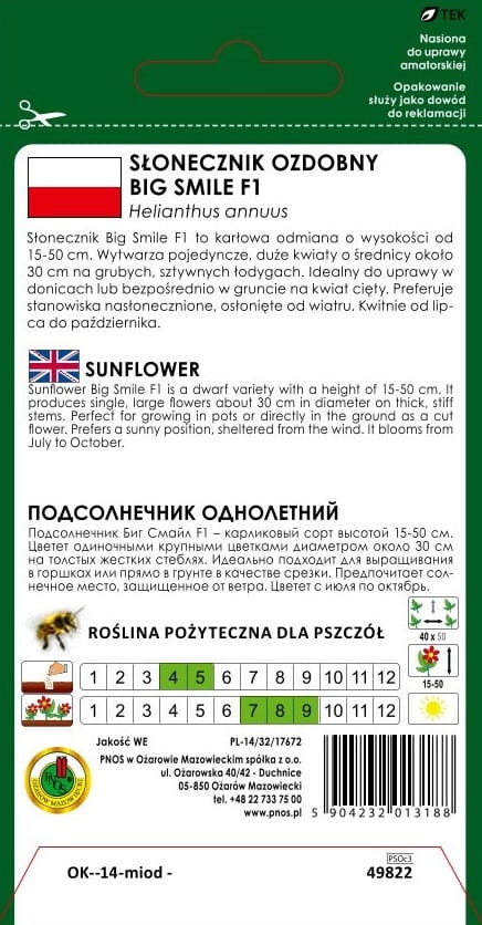 SŁONECZNIK OZDOBNY 'BIG SMILE' F1
