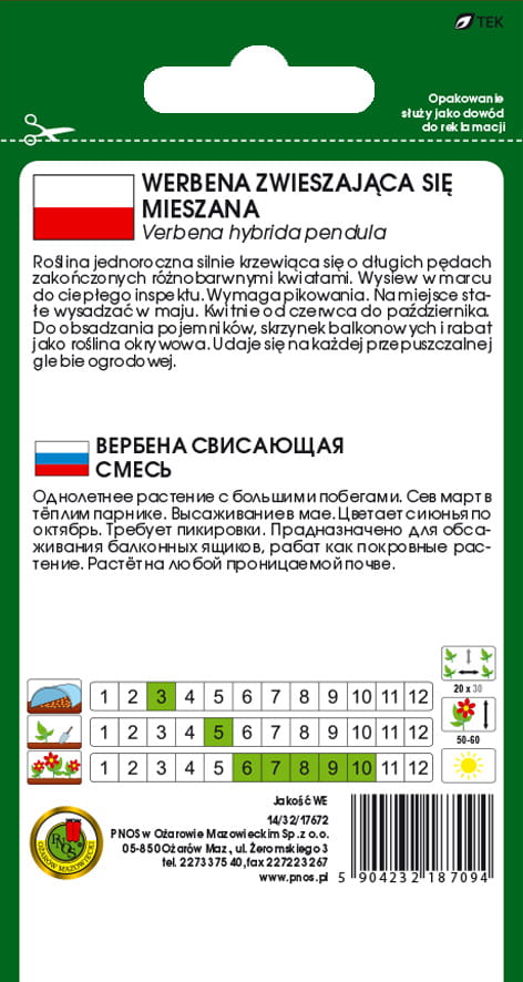 WERBENA ZWIESZAJĄCA SIĘ MIESZANA