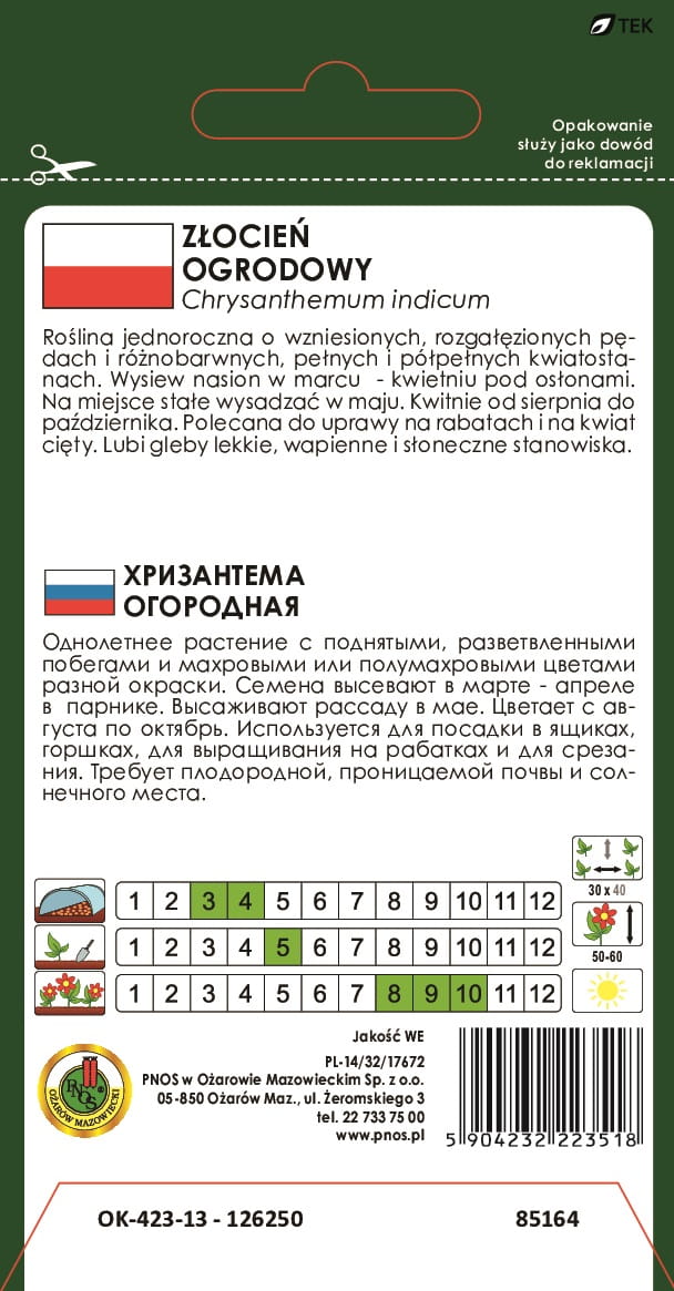 Wysiew: III-IV pod osłonami lub IV-V wprost do gruntu