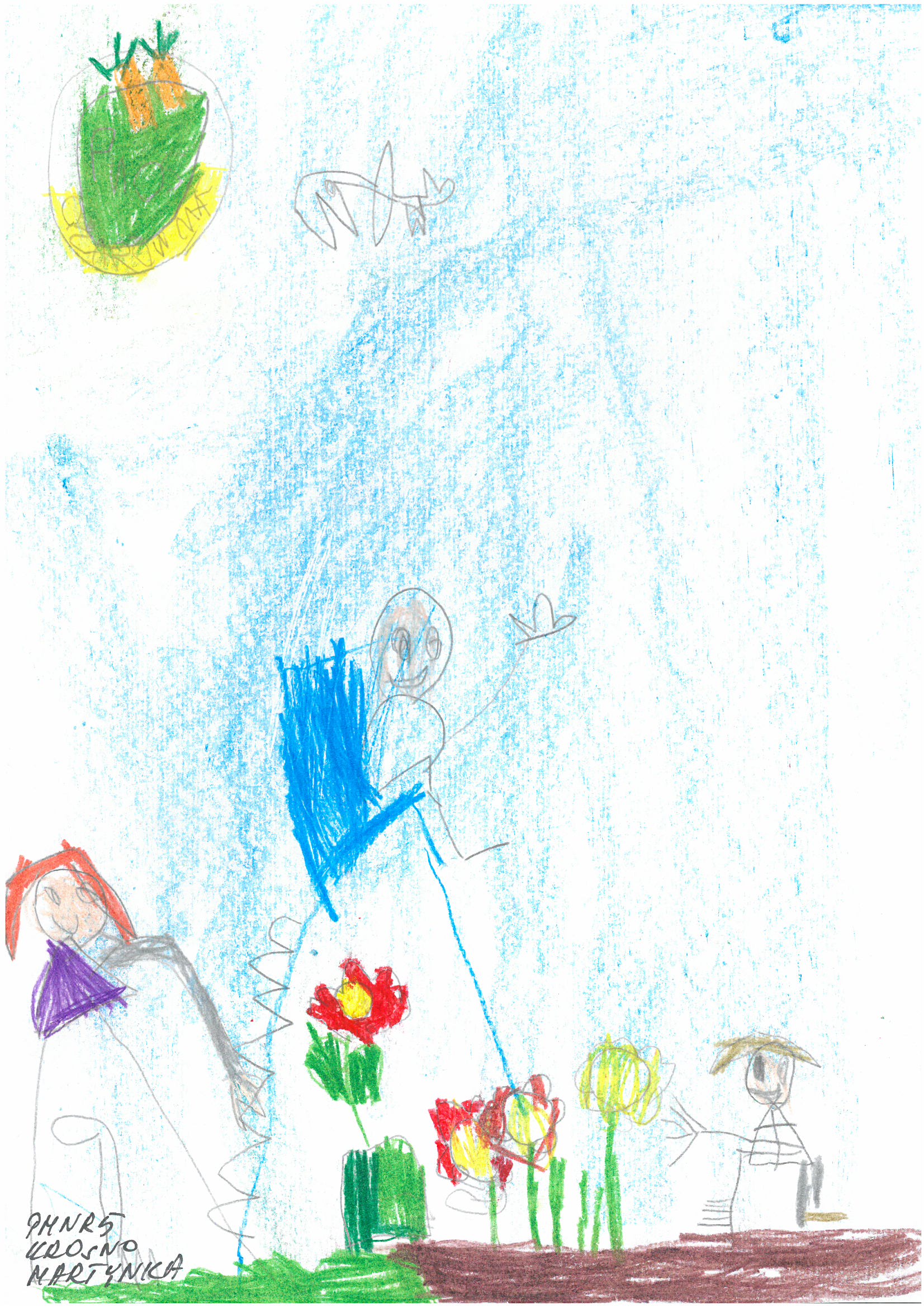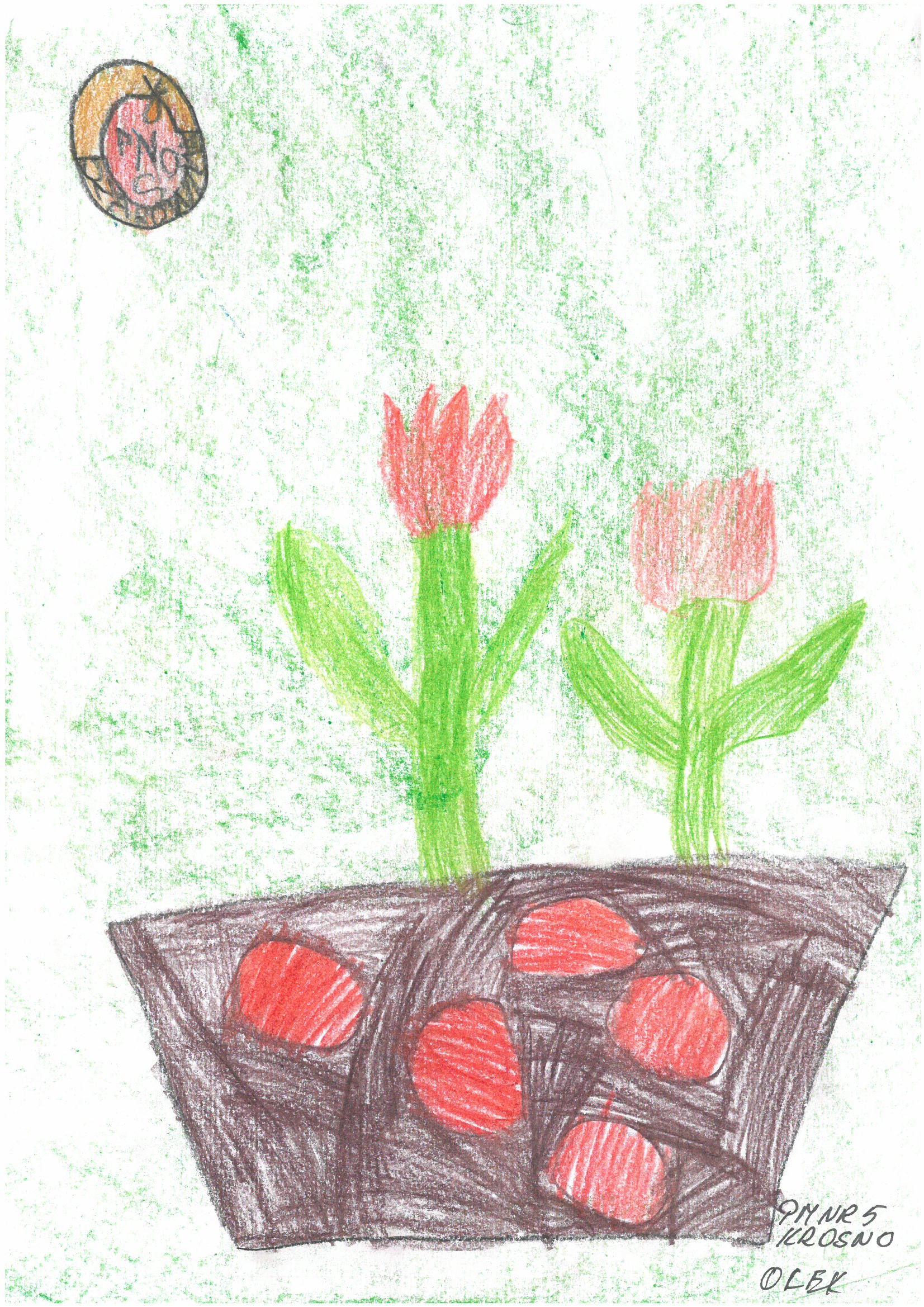 Po zajęciach dzieci narysowały roślinę swoich marzeń, którą posiały lub posadziły oraz zapoznały się ze znakiem firmowym PNOS , który umieściły w swoich pracach plastycznych z ogromnym zaangażowaniem.